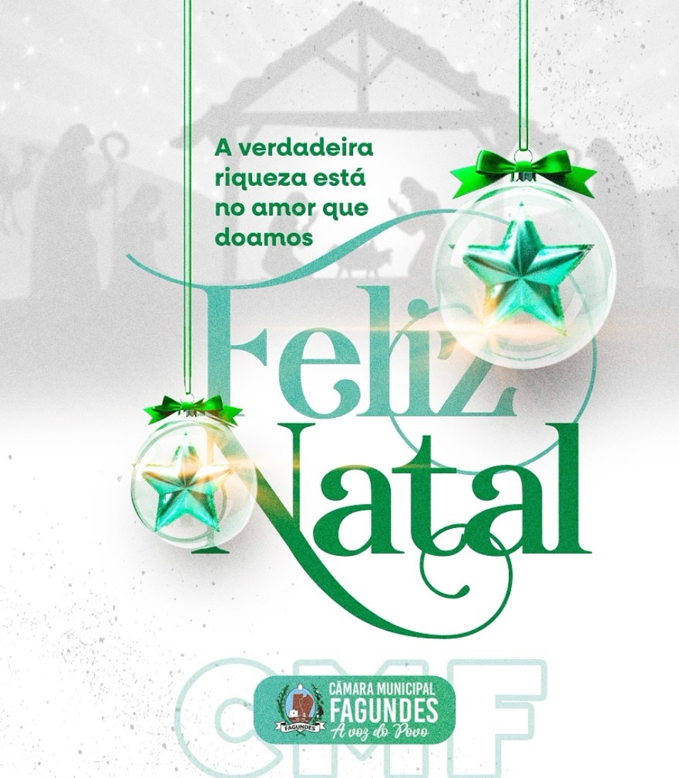 A Câmara Municipal de Fagundes deseja a todos os cidadãos um Feliz Natal de muita paz, amor e união. Que o espírito natalino traga luz aos nossos corações, renovando as esperanças e fortalecendo os laços que tornam nossa comunidade ainda mais forte.
